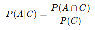 Esto significa que nos fijamos en los casos en que ocurre C y dentro de ellos, calculamos la proporción en la que también ocurre A.